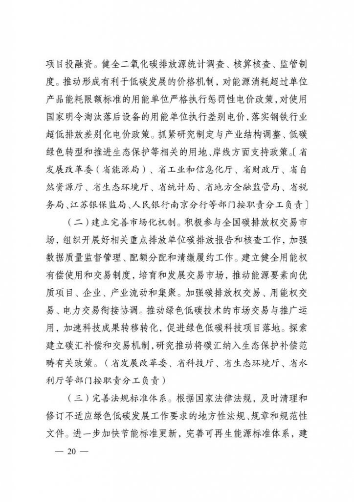 日前,《江蘇省碳達(dá)峰實施方案》印發(fā),方案指出:到2025年,單位地區(qū)生產(chǎn)總值能耗比2020年下降14%,單位地區(qū)生產(chǎn)總值二氧化碳排放完成國家下達(dá)的目標(biāo)任務(wù),非化石能源消費比重達(dá)到18%,林木覆蓋率達(dá)到24.1%,為實現(xiàn)碳達(dá)峰奠定堅實基礎(chǔ)。