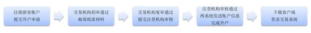 3、交易機構對紙質申請材料復審,復審通過后,移交注冊登記賬戶紙質申請材料至注冊登記機構審核;